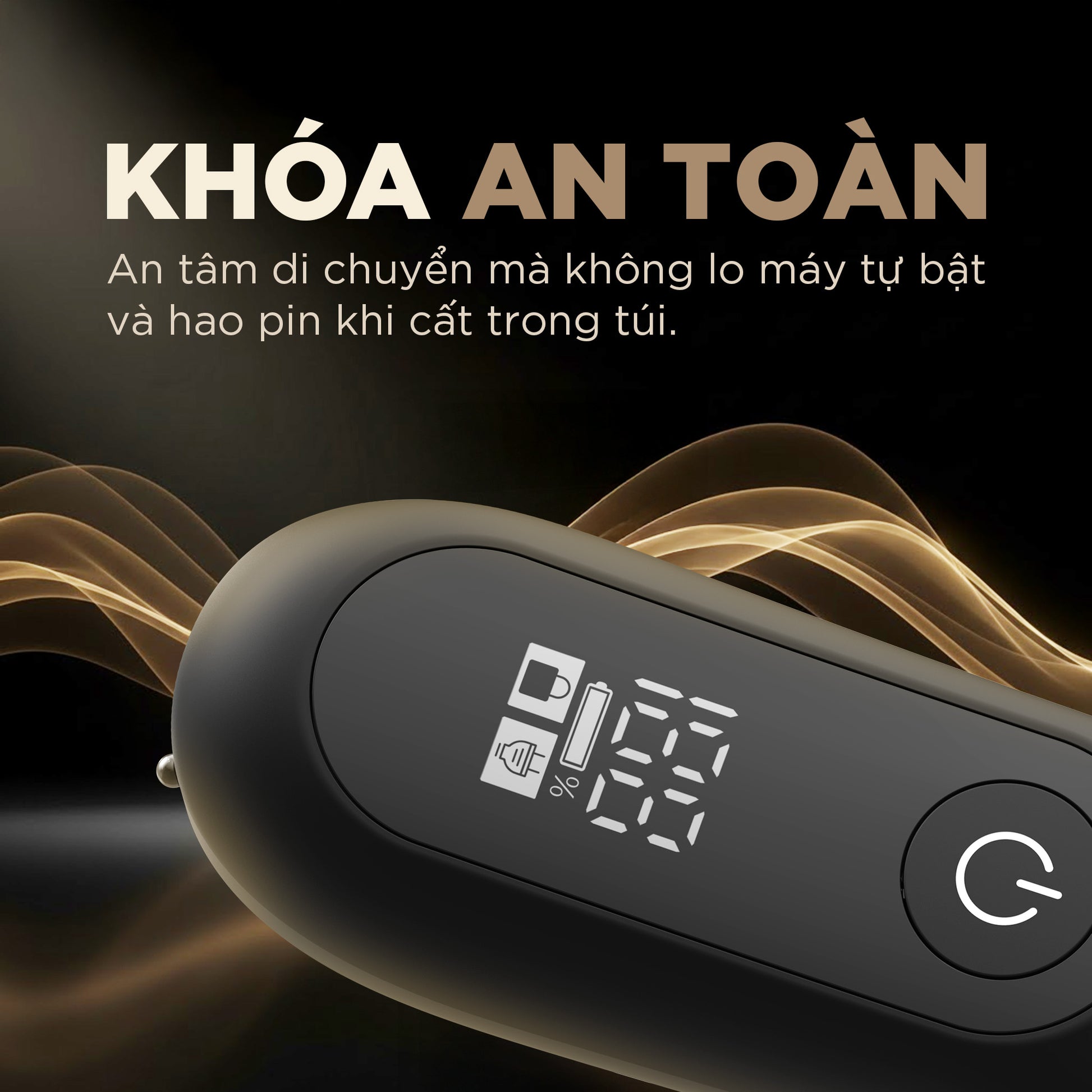 Khóa an toàn là tính năng của máy cạo TRIMDAY 3.0 MAX, nhằm ngăn máy vô tình bật và hao pin khi bạn đang di chuyển. Để bật/tắt tính năng, giữ nút cảm ứng trong 3 giây.