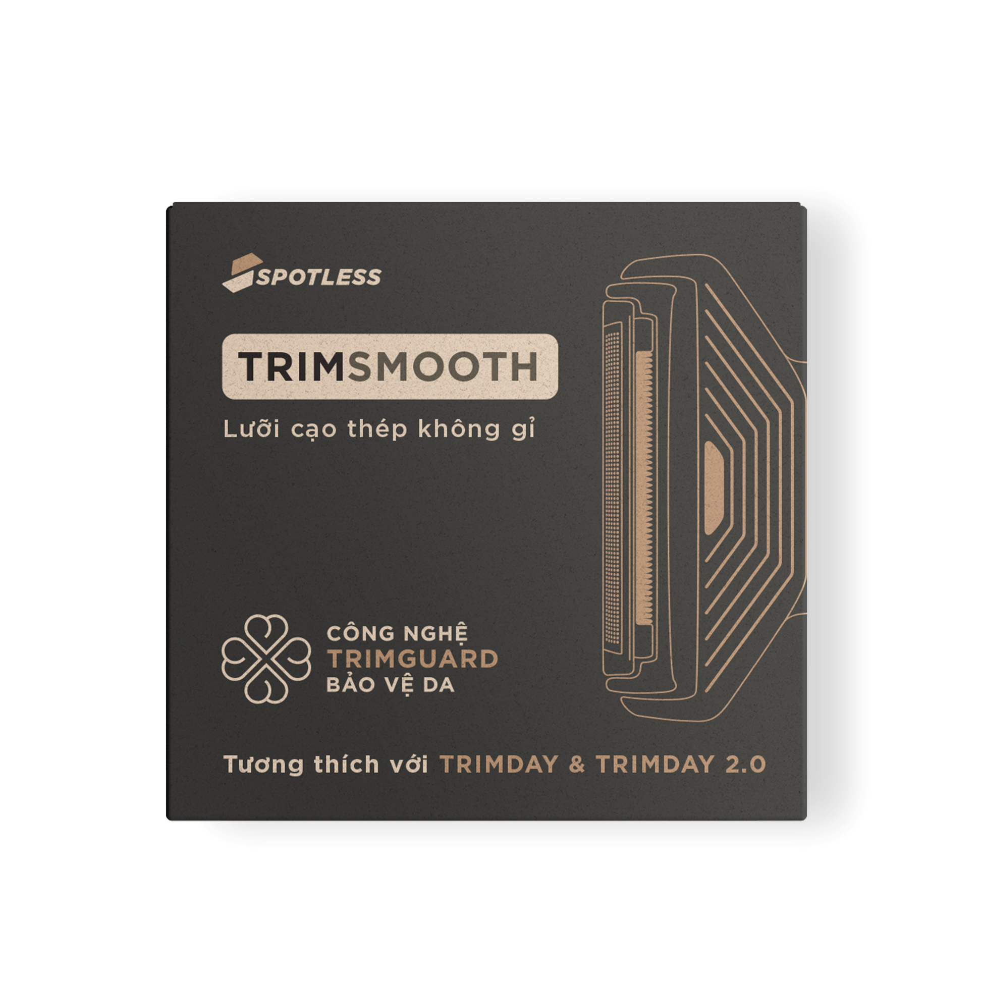 Muốn cạo thật sát cho vùng râu, tay hoặc chân? Lưỡi cạo TRIMSMOOTH chính là phụ kiện bạn cần. Được thiết kế để cạo sát da hơn TRIMBLADE, lưỡi dao này giúp loại bỏ lông gần như hoàn toàn, mang lại cảm giác mượt mà và sạch sẽ tuyệt đối. Tương thích với tất cả dòng máy cạo TRIMDAY.